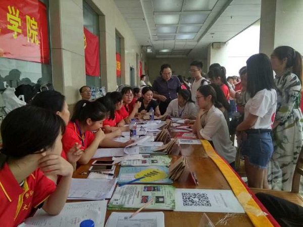9月8日至10日是我校2017级新生报到的日子,文学院迎新工作在图书馆一楼有条不紊地进行。