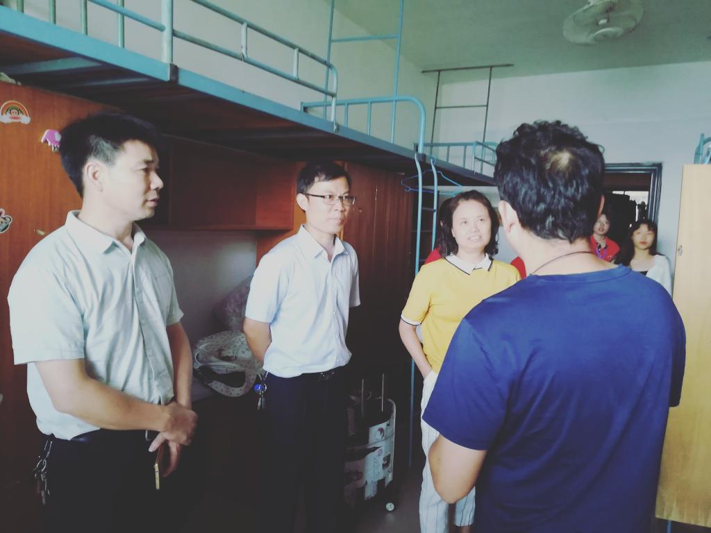 9月8日下午,文学院党总支书记吴芳、院长易志文、副书记孙琦、团总支书记黄如光,辅导员黎农、刘小伟等老师一同走访了9栋、17栋、8栋的18级新生寝室,亲切看望新生,询问入学情况。