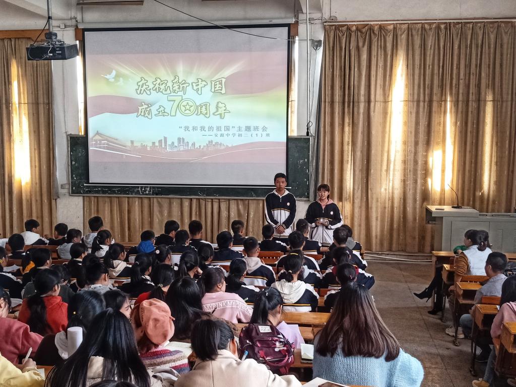 此次主题班会共分三个环节,由初二(1)班学生进行展示。“述爱国故事”环节中,学生讲述董存瑞、朱自清、王进喜的爱国故事,使在场学生对中华民族的爱国情怀有了更加深刻的认识;“诵爱国诗歌”环节中,学生朗诵《我骄傲,我是中国人!》、闻一多《一句话》,铿锵有力的诗句带来了心灵的震撼;“畅所欲言,谈爱国”环节中,学生积极分享自己关于“爱国是什么”以及“怎么样爱国”的认识和心得体会。随后,初二(1)班全体学生手握五星红旗合唱《我的祖国》并宣誓,展现了对祖国的祝福与热爱。最后,肖礼萍老师对本次主题班会进行了总结与点评,并引用“今天咱们都是祖国母亲的孩子,明天我们将担负起建设祖国母亲的重担”这句话,给本次主题班会画上一个完美的句号。