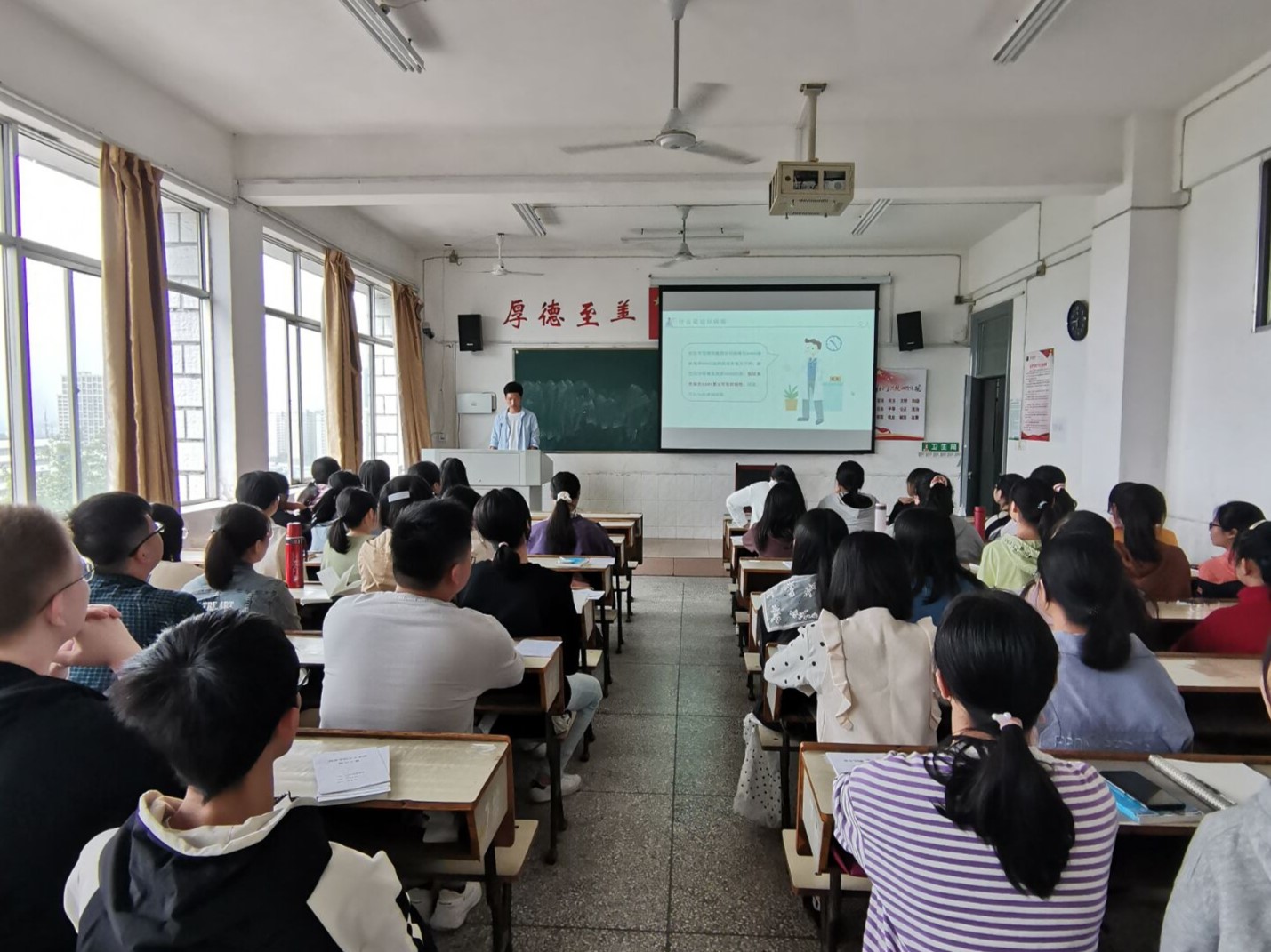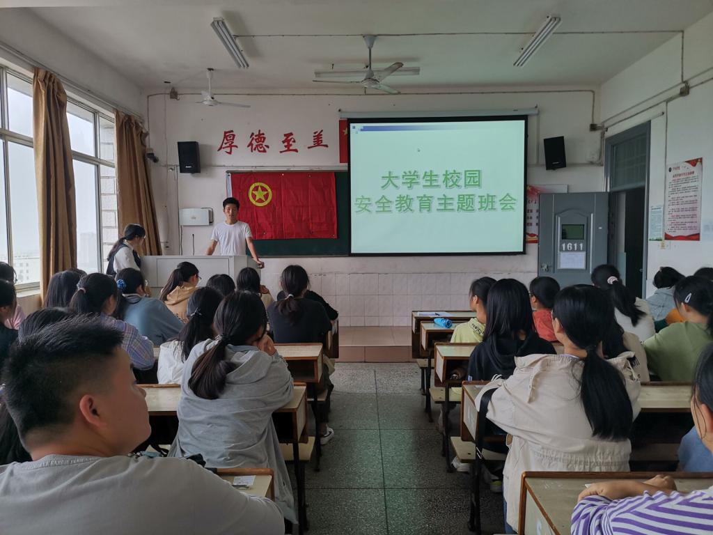 随后,各班学生辅导员就本班级分别开展入学教育活动。根据新生安全入学手册,学生辅导员向新生细致讲解了防火、防盗、防骗、疫情防控、交通安全等八个方面的安全问题。学生辅导员文盛林通过列举高校真实案例、播放典型案例视频等方式,指出了大学生防盗意志薄弱、防盗措施不完善,从而导致钱财损失、人身安全遭到威胁的情况,希望新生引以为戒,注意财产安全,时刻保持警惕,不轻易将个人信息透露给他人。