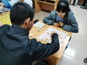 为丰富同学们的校园文化生活,培养同学们的兴趣爱好,锻炼同学们的逻辑思维能力,人文与传媒学院于3月29日在跬步楼六楼学生会办公室举行象棋比赛。