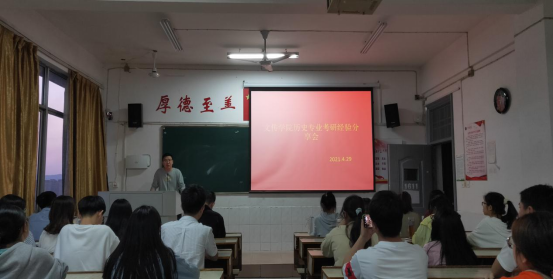 4月29日晚7点,欧洲杯下单平台官网历史学专业考研经验交流会于跬步楼1611教室举行,欧洲杯下单平台官网副院长凌焰、18历史班班主任张辉海出席,历史班全体学生参会,本次活动由张辉海主持。