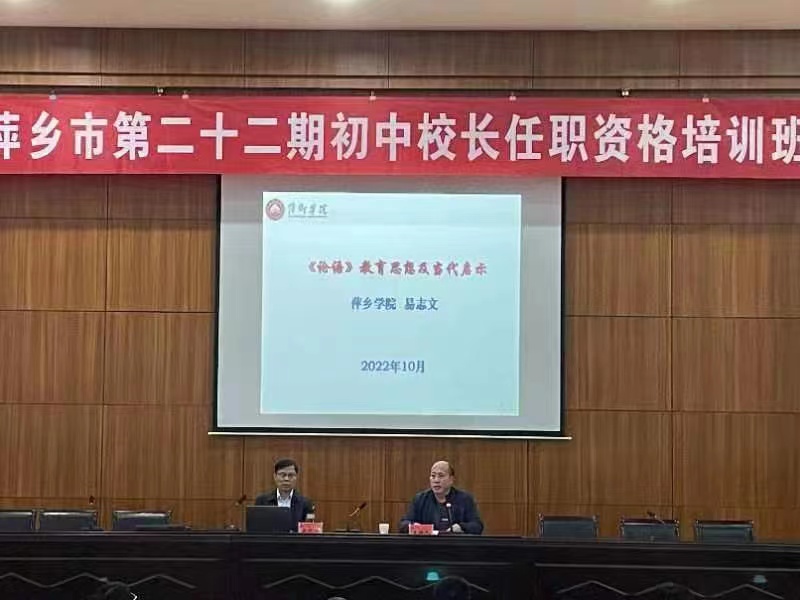 聚精会神学技艺,踔厉奋发写新时代。为推动初中教育高质量发展,近日,萍乡市教育局主办了萍乡市第二十二期初中校长任职资格培训班,欧洲杯下单平台官网院长易志文教授在此次培训班上开展了《<论语>教育思想及当代启示》的专题讲座。