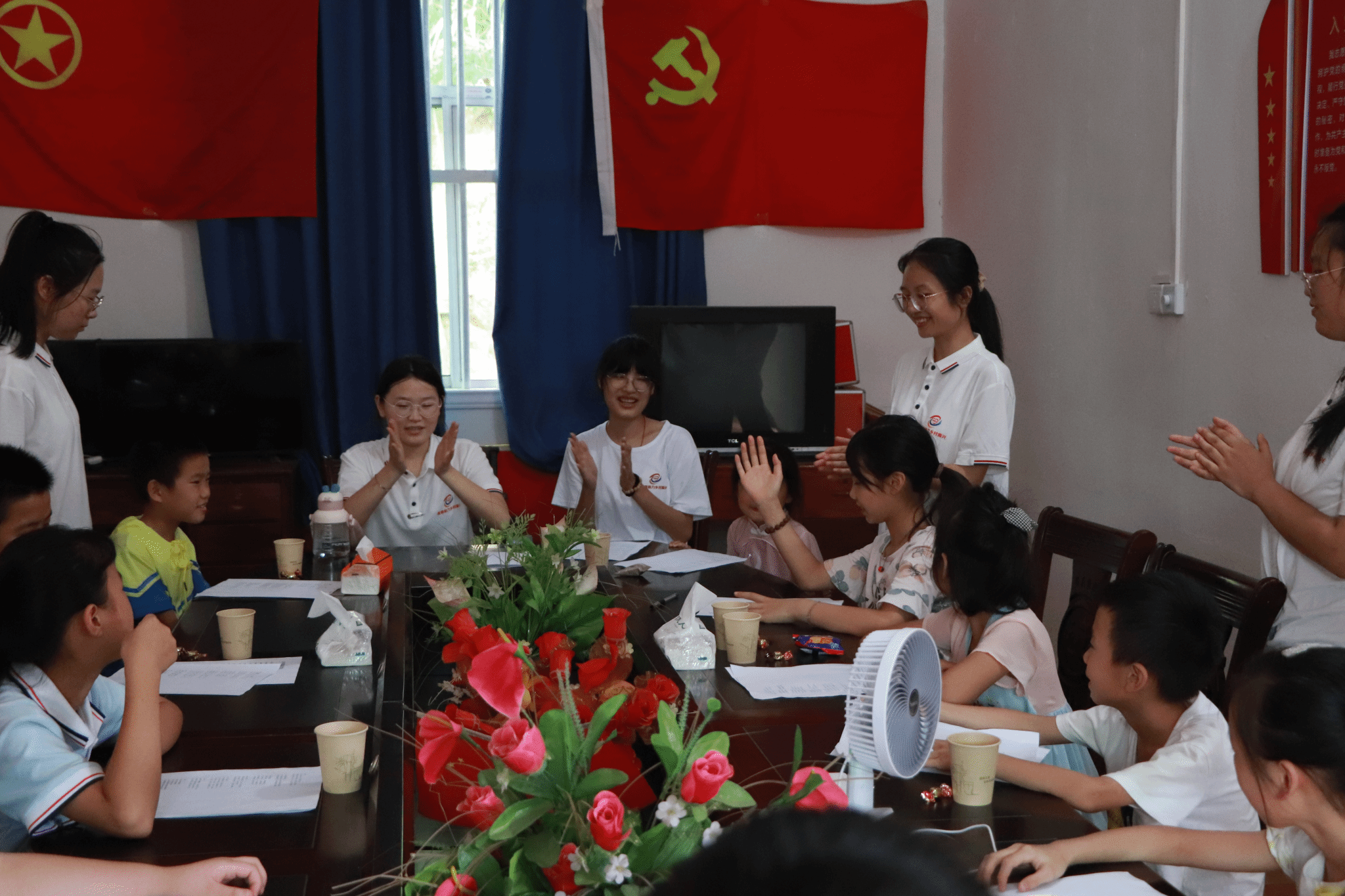 最后,服务团成员和冲头村的小朋友们进行了合影,圆满结束了第一次课堂。在本次语言课堂中,萍乡学院"同心 同语 同行"暑期志愿服务团成员给予了小朋友们陪伴和鼓励,让他们感受到中华文化的博大精深,营造愉快的讲普通话氛围,并提高了小朋友们的语言能力和综合素质,共同留下美好回忆,推动了乡村语言文化建设。